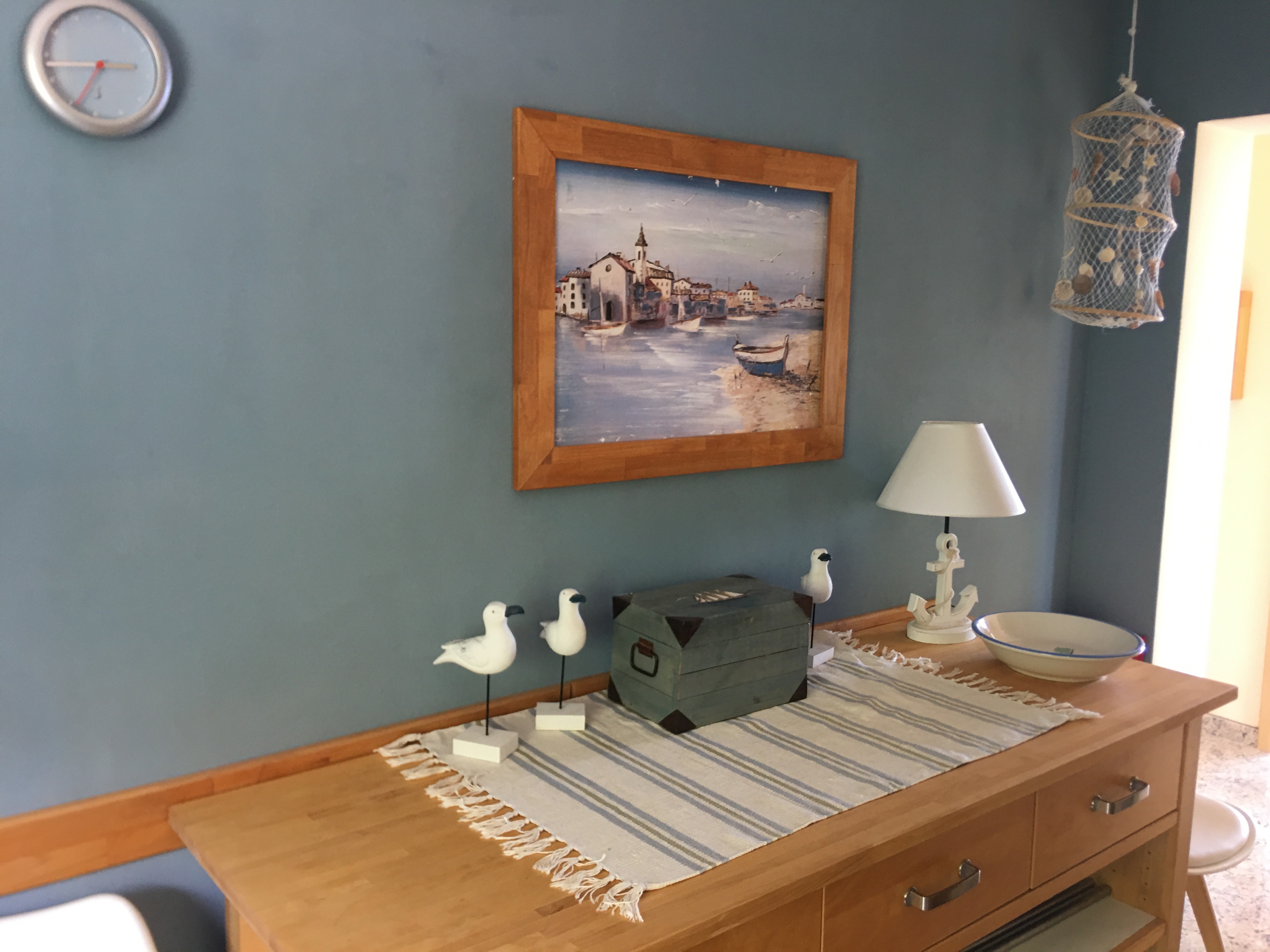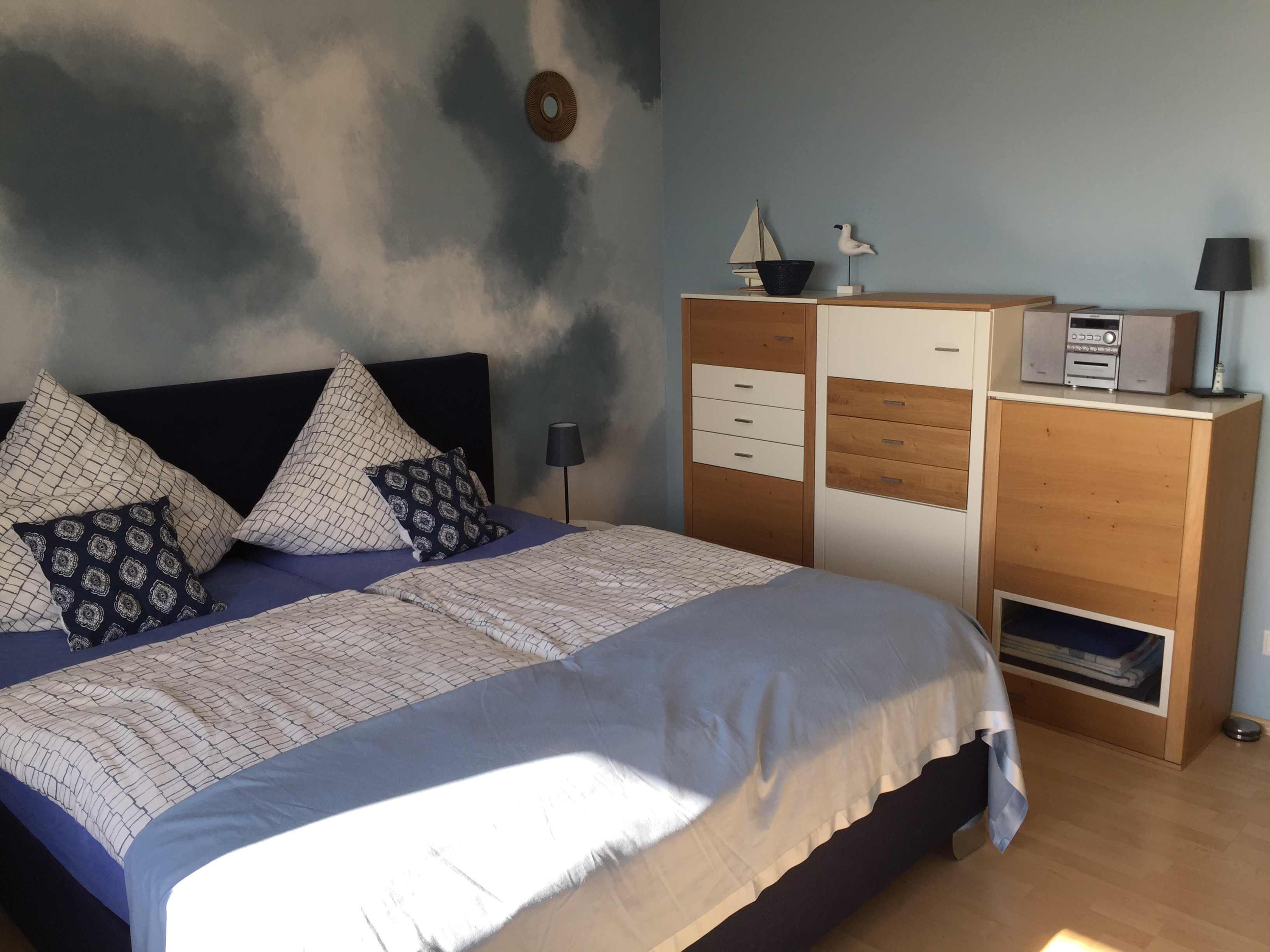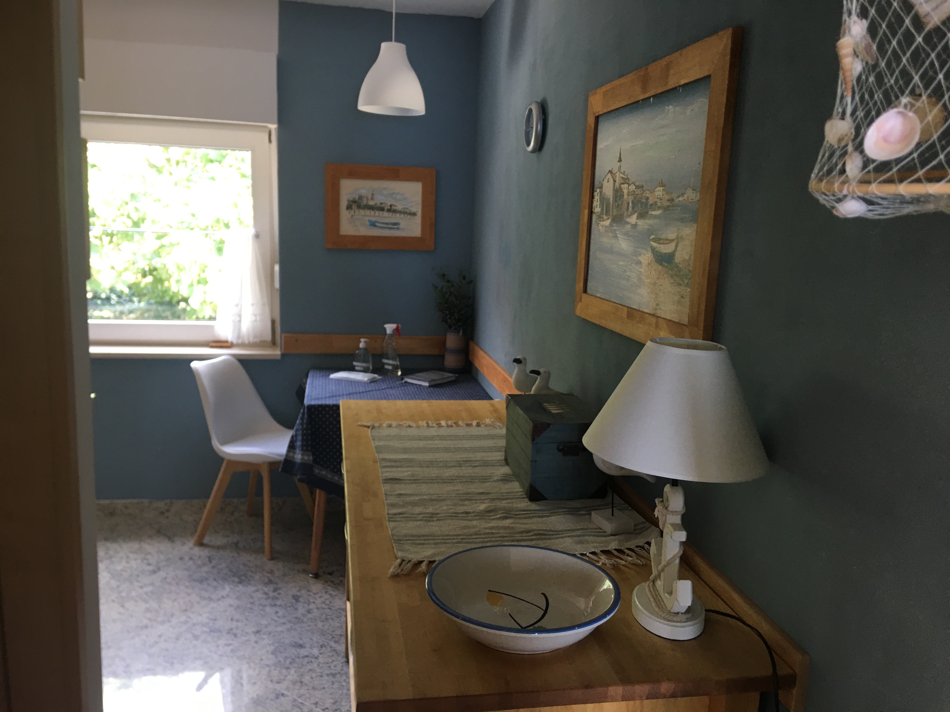 in azurblau gehaltene Ferienwohnung