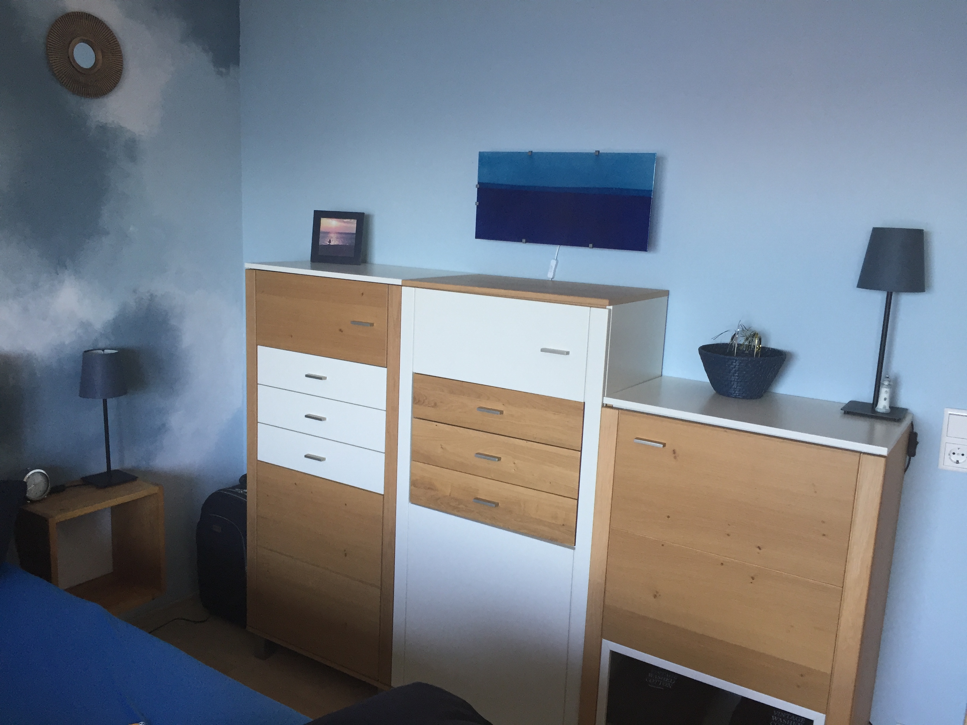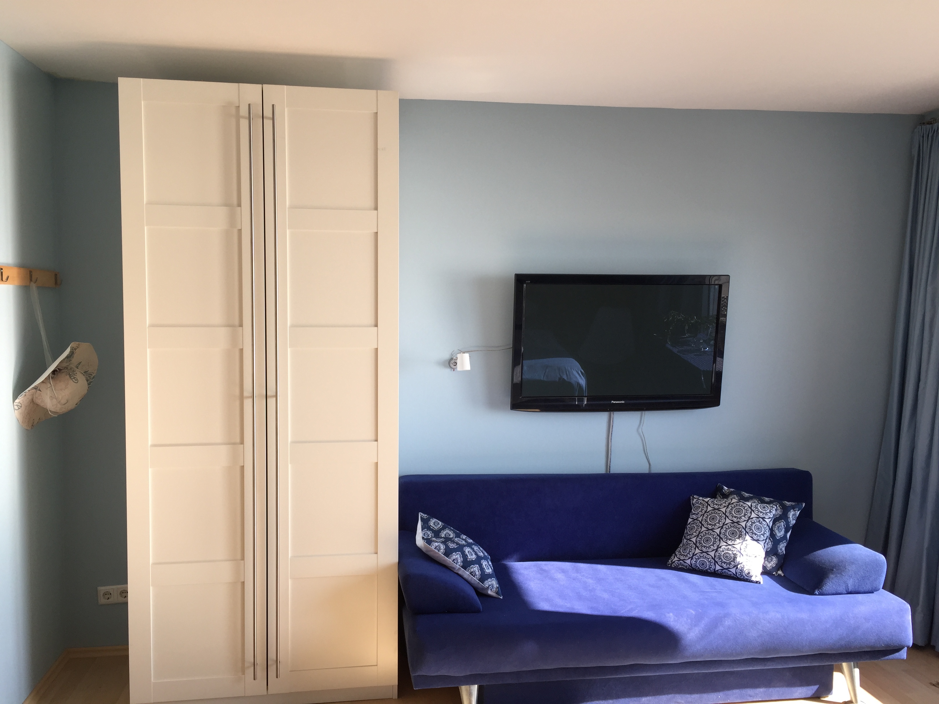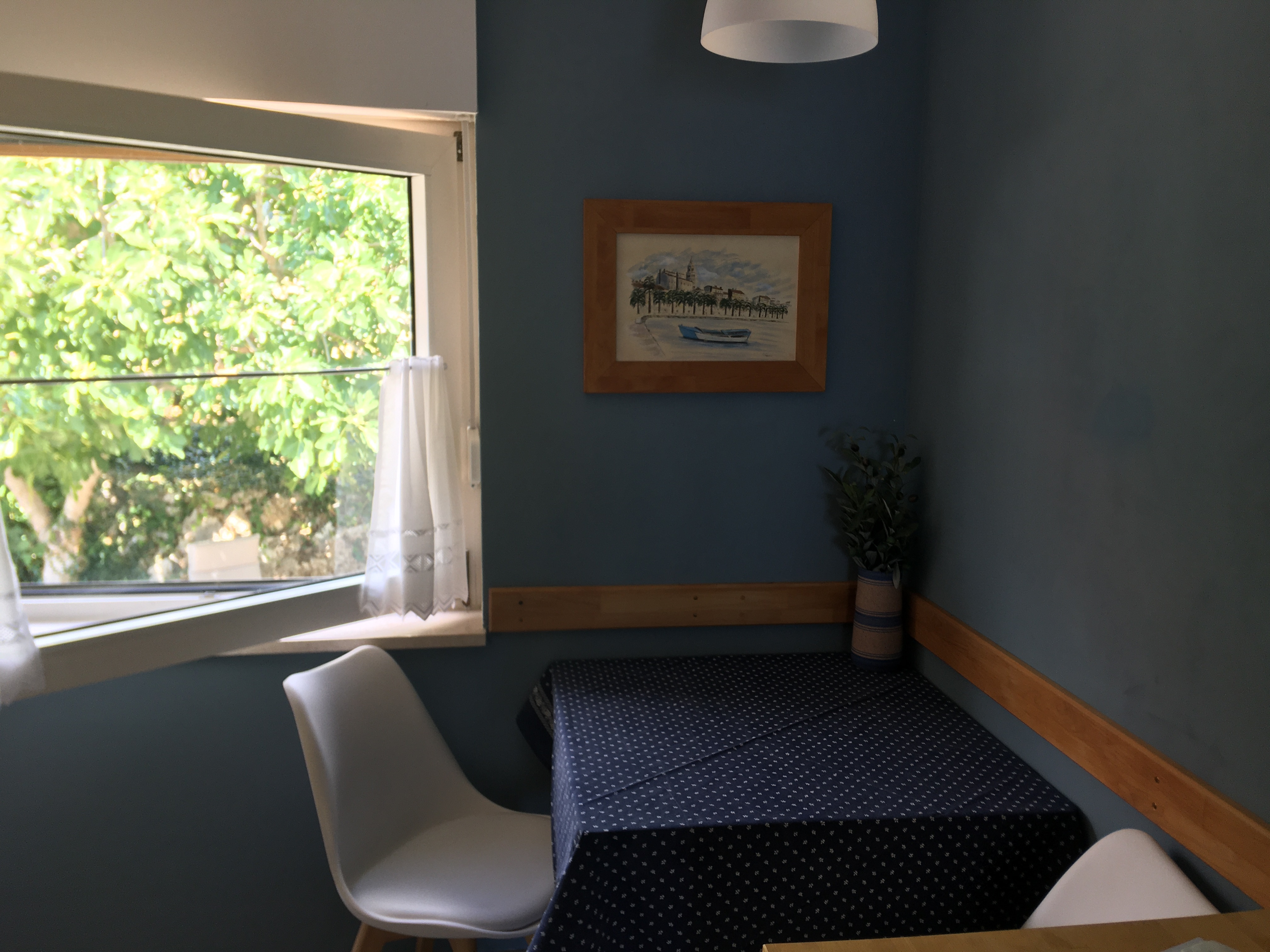in azurblau gehaltene Ferienwohnung